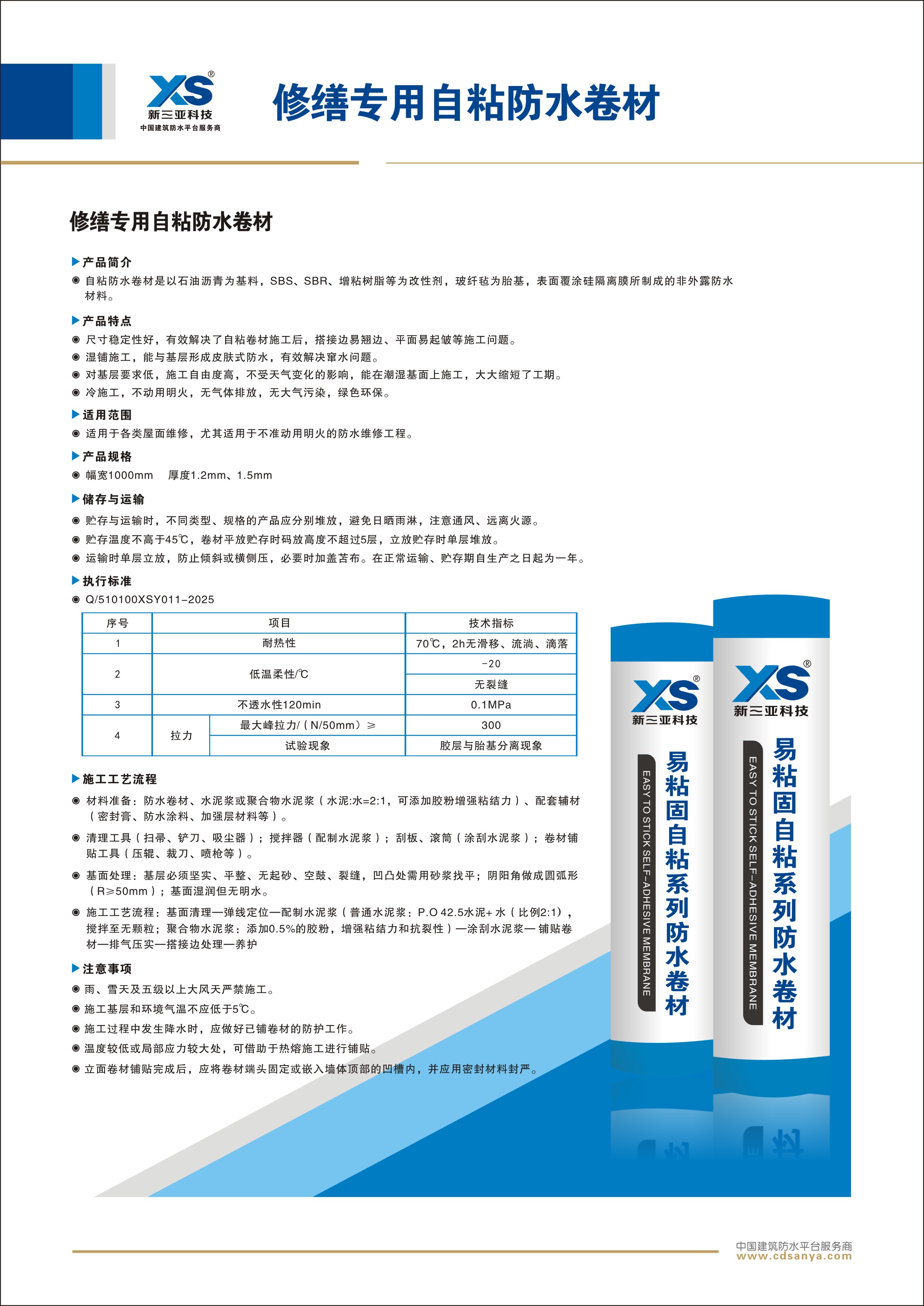 適用于各類屋面建筑,尤其適用于不準(zhǔn)動(dòng)用明火的防水工程、新舊金屬屋面工程防水 | ![]() |